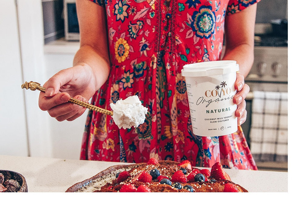 Hemp Seeds, Organic Maple Syrup, Fresh Berries, Mango, Coyo Coconut Yoghurt & Loving Earth Chocolate